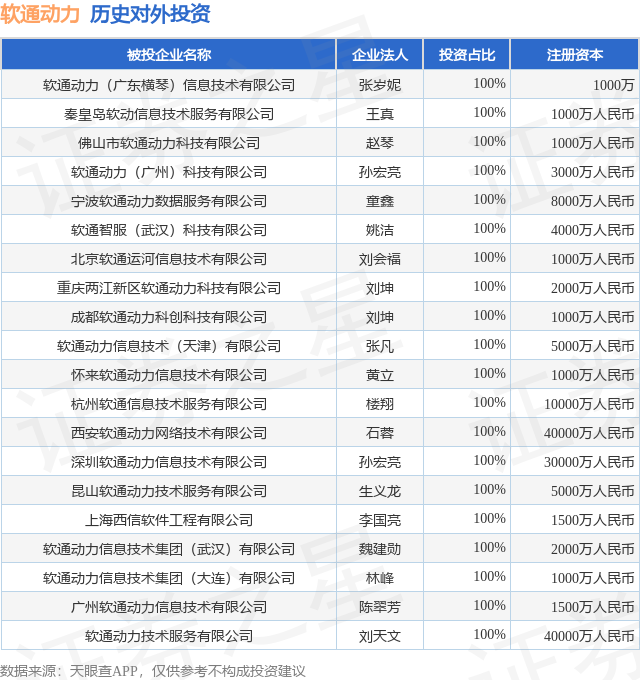 本站消息,根据天眼查APP显示,软通动力(301236.SZ)新增一起对外投资事件,被投资公司为美通优视(北京)科技有限公司,法定代表人穆磊,投资占比为-。该公司从事科技推广和应用服务业,注册资本为178.58万人民币。目前,软通动力共存在对外投资68项云上速配,投资占比前20的项目见下表: