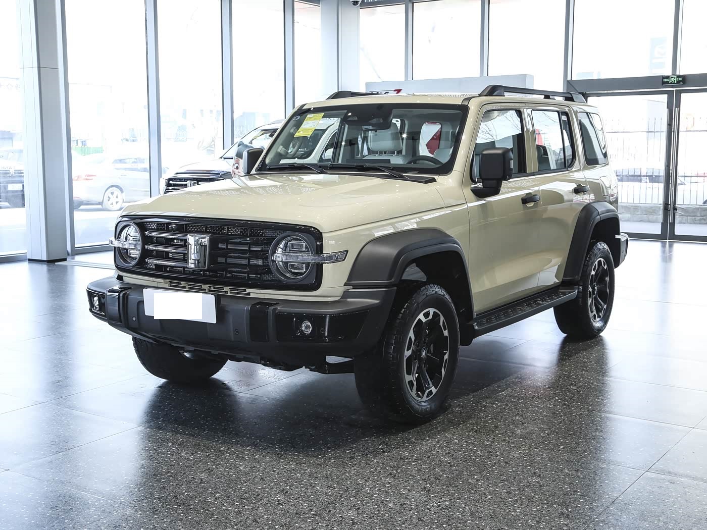再来看车身侧面部分,车身侧面延续了经典的方盒子造型,4760mm的车长、1930mm的车宽和1903mm的车高,营造出强烈的视觉冲击力。2750mm的轴距保证了车内空间,同时保持了良好的通过性。32度的接近角和33度的离去角仁信,让这款车在面对陡坡和障碍物时游刃有余。值得一提的是,Hi4-T车型采用了黑色轮眉、门把手和外后视镜设计,整体感更强。车顶行李架和侧踏板不仅实用,还增添了整车的粗犷气质。新增的沙丘米色车身在阳光下呈现出独特的质感,成为了城市中的一道风景线。