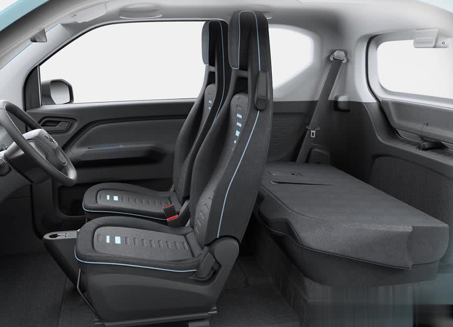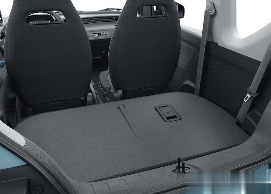 新车的长宽高为2917/1493/1621mm,轴距仅为1940mm,因此车内安排下4个座椅已经很不简单了。由于后排是整体式的靠背,座椅放倒之后靠背很平整,在不使用后座的时候还能拉一些大件的物品,空间实用性还是不错的。